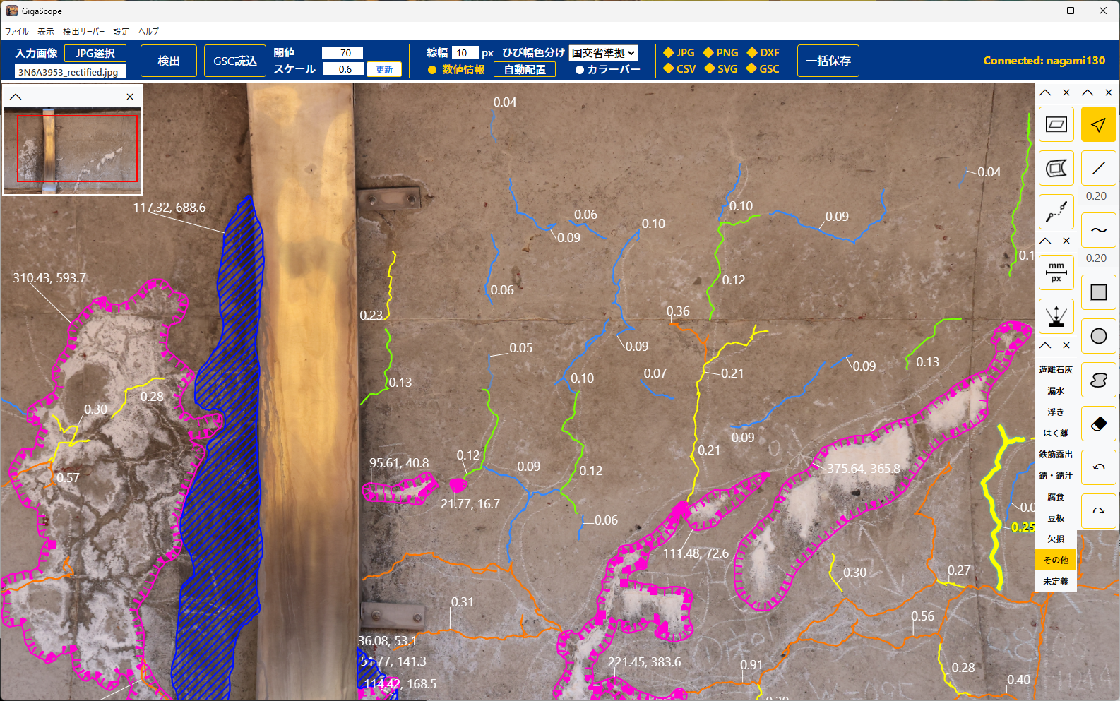 損傷自動検出技術 C2finder(ひび割れ・遊離石灰)WebサービスおよびWebAPI